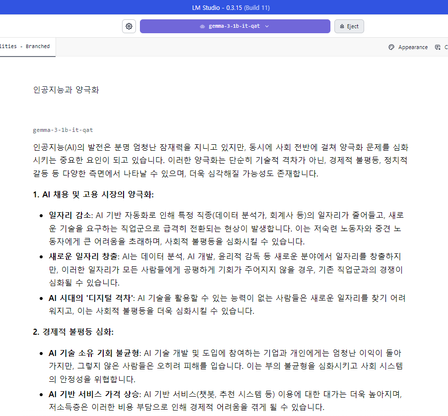 LM Studio 프로그램을 이용해 누구나 쉽게 다운로드 해서 돌려볼 수 있다.
