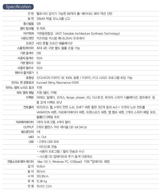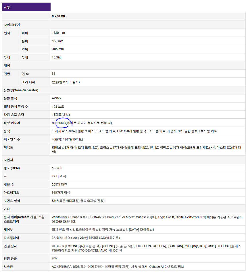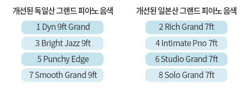 - 음원 용량 : 2기가 (일본 그랜드피아노 1기가)