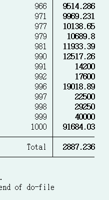 2. 다음으로 tabstat을 통해 분위수별 평균소득을 산출한다.
