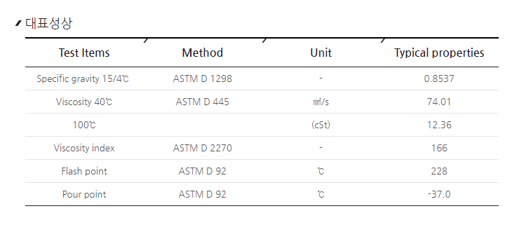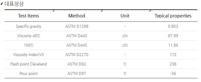 아래 모델에 비해 점도가 약간 더 높음 (같은 5w30임)
