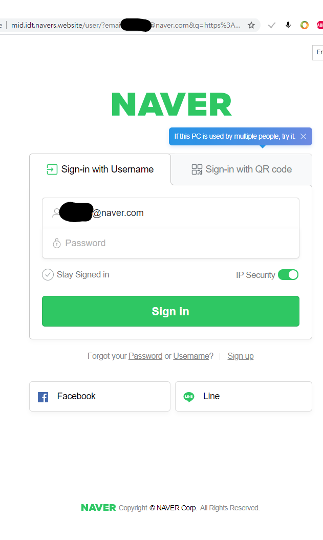 로그인 페이지로 연결되는데 네이버 로그인 페이지와 똑같이 만들어놓음. 그러나 주소가 이상함.